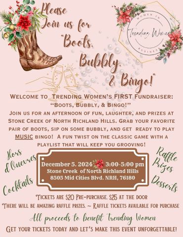 Founded in 2022 by Darla, Jaci, & Katie, Trending Women has been bringing women together to connect and inspire for almost 2 years . What started as a 3 colleagues having lunch at Trending Kitchen, has now grown into a vibrant community of incredible women. We're proud of our group and excited for what the future holds!